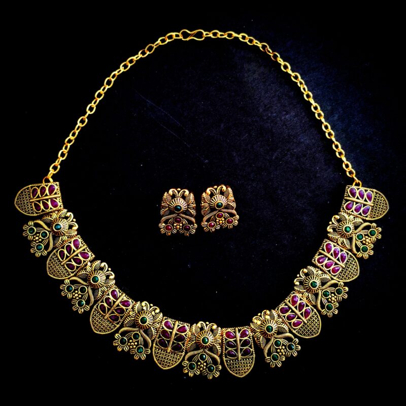 Oxidised Peacock Feather Choker Set with Earrings